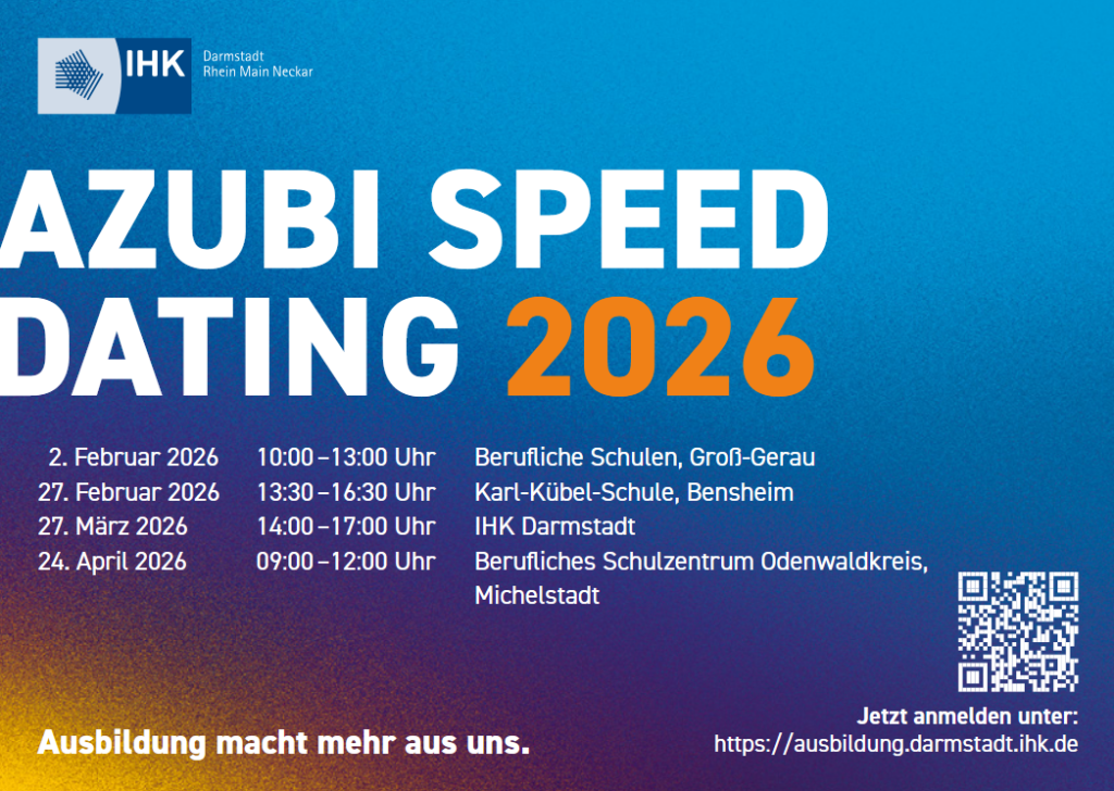 Azubi-Speed-Dating Michelstadt am Freitag, 24. April 2026 von 09:00 – 12:00 Uhr am Beruflichen Schulzentrum Odenwaldkreis